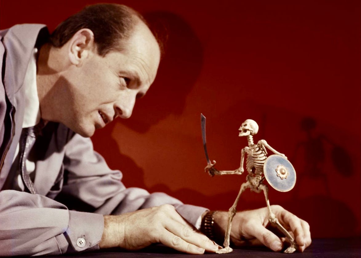 Ray Harryhausen was the first filmmaker I was ever aware of. When I was very small, and barely able to distinguish between real life and the fantasies I’d get lost in on screen, the last thing I thought about were the folks behind the scenes. Ray, though, was something special: An artist and a technician, a magician, really, or the next best thing, who breathed patient, artful life into the creatures inhabiting many of our favourite films.